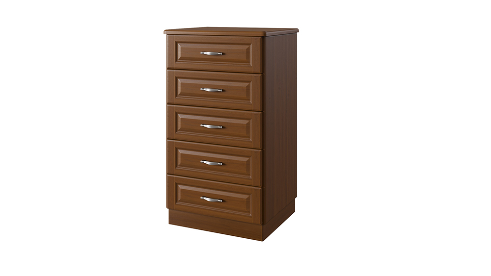 Универсальный предмет мебели — изысканный и функциональный комод — колонка «Эдем» занимает минимальное место в спальне, благодаря своим компактным размерам. Пять вместительных выкатных ящиков оснащены телескопическими направляющими в базовой комплектации и могут быть направляющими с системой довода опционально. Разнообразие цветовых решений на массиве бука и ясеня позволяет легко дополнить интерьер любых цветовых решений. Сборка не требуется.