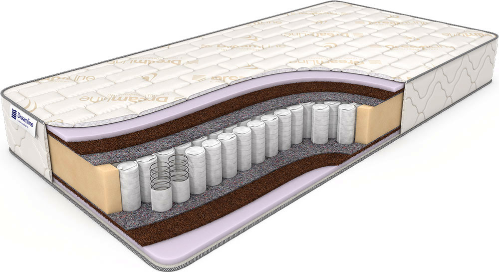 Наполнение матраса это сочетание материала Poly Refine и слоя ППУ. Poly Refine, позиционируется как материал с высоким уровнем жесткости за счёт своей плотности (1000 гр. на кв.м.), он состоит из плотно спрессованных хлопковых и синтетических волокон, гипоаллергенный, хорошо дышащий, достаточно эластичный и долговечный. Над Poly Refine'ом находится слой ППУ – искусственного латекса, делающего матрас более удобным и комфортным. Над пружинным блоком располагается термовойлок, окутывающий блок с независимыми пружинами TFK, обеспечивающими матрасу хорошие анатомические показатели.