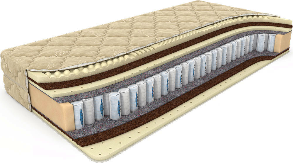 Промежуточный наполнитель – Натуральная кокосовая койра: добавляет упругой жёсткости всей рабочей поверхности матраса.