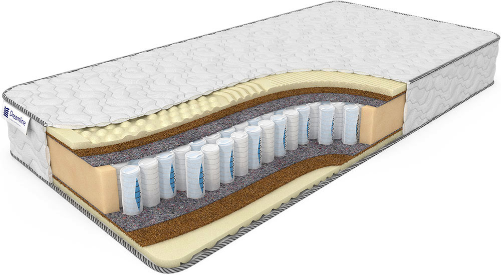 Над блоком пружин расположены натуральные наполнители из коксового волокна и латекса, которые отделены от металла термовойлоком (представляет собой плотный нетканый материал, обладающий высокой прочностью). За счет того, что наполнители матраса воздухопроницаемые, хорошо сохраняется благоприятный климат спального места.