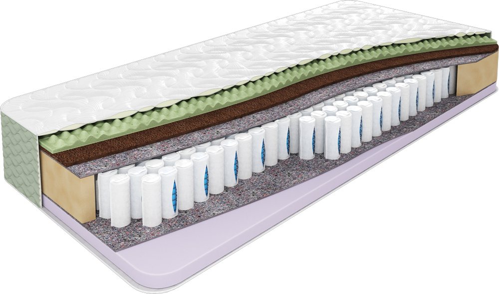 Идеальная жесткость — комбинация кокосовой койры (1 см) и высокоэластичного пенополиуретана (40 мм) создает баланс упругости и комфорта.