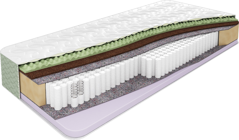 Идеальная жесткость — комбинация кокосовой койры (1 см) и высокоэластичного пенополиуретана (40 мм) создает баланс упругости и комфорта.