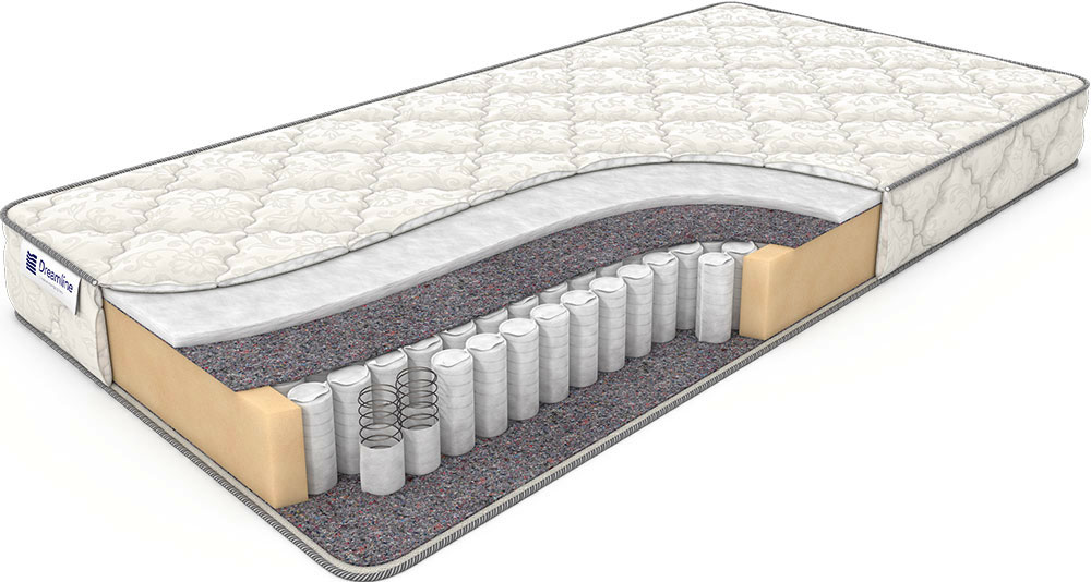 Простота и удобство на независимом пружинном блоке. Современный нетканый материал холлофайбер, обладающий высокой жёсткостью, обеспечивает сбалансированное распределение массы тела по поверхности матраса, оказывая профилактический эффект, предупреждающий от возможных проблем в области спины. Слой наполнителя расположен на пружинном механизме TFK, конструкция которого гасит нежелательные колебания матраса и способствуют крепкому и здоровому сну. Защитная прослойка из натурального льноджутового волокна препятствует губительным контактам металлических пружин с наполнителем, продлевая срок службы матраса.
