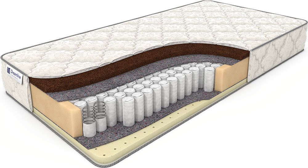 Смонтированные на независимом пружинном механизме TFK данный матрас прекрасно защищен от нежелательных колебаний. При этом его поверхности обладают различными свойствами. Сторона А – обладая высоким уровнем жёсткости, наполнитель из кокосовой койры обеспечивает комфортное расположение тела в горизонтальной плоскости и служит надёжной опорой для позвоночника. Сторона Б – благодаря наполнителю из натурального латекса обладает высокой анатомичностью, то есть свойством принимать форму тела, лежащего на матрасе, что способствует быстрому снятию мышечного напряжения и гарантирует глубокий здоровый сон. Прослойка из натурального льноджутового волокна защищает наполнители от преждевременного разрушения из-за трения о пружины.