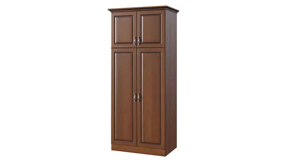 Классический шкаф, созданный в едином стиле с коллекцией Эдем — изделие без которого не возможно себе представить спальню. Корпус шкафа может быть изготовлен как из массива бука и ясеня, так и из массива мягколиственных пород, что делает его стоимость еще более демократичной. Двух створчатый шкаф имеет 3 базовые комплектации: c антресольной секцией в верхней (2-3) или нижней части (2-1) шкафа, или двумя выкатными ящиками (2-2) в нижней части шкафа. Фасады шкафа могут иметь встроенные зеркала, как на лицевой части фасада — по размеру филенчатой части, так и на внутренней стороне фасада. Распашные дверцы шкафа оснащены петлями с системой до-закрытия в базовой комплектации. В большей секции шкафа предусмотрена штанга для плечиков. По желанию шкаф может быть оснащен любым количеством полок.