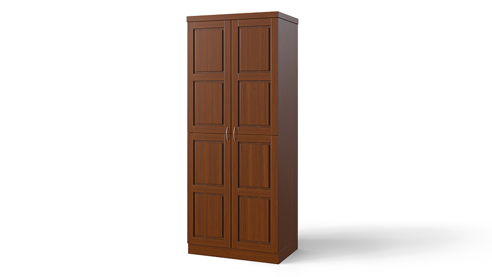 Малогабаритный и функциональный шкаф, созданный в едином стиле с коллекцией Варна — изделие без которого не возможно себе представить спальню. Корпус шкафа может быть изготовлен как из массива бука и ясеня, так и из массива мягколиственных пород древесины, что делает его стоимость еще более демократичной. Распашные фасады шкафа — это единые по высоте шкафа створки филенчатой конструкции, разделенная на 4 визуально равные части, которые могут иметь встроенные зеркала как на лицевой части фасада — по размеру филенчатой части, так и на внутренней стороне фасада. Стандартно предусмотрено две комплектовки шкафа: с антресольной секцией вверху (2-3) или внизу (2-1). В единственной секции шкафа предусмотрена штанга для плечиков. По желанию шкаф может быть оснащен любым количеством полок и/или разделен на две независимые секции.