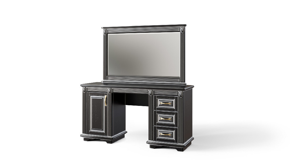 Стол для косметических принадлежностей, украшений, аксессуаров и различных приятных мелочей — Палермо ЭЛИТ, функциональное пространство для личных целей. Единое дизайнерское решение элементов декора, четко выверенные пропорции и безупречнеая функциональность! Все это создают: полноразмерное зеркало с вариантами крепления к стене или к столешнице туалетного стола, 3- выкатных ящика, 1 ниша с распашной дверцей и 1 потайной ящик под столешницей. Высококачественная ручная отделка столика Палермо, как и всей остальной мебели серии Палермо, в полной мере передает любовь и теплоту с которой мастера DreamLine создают мебель. Сборка не требуется.