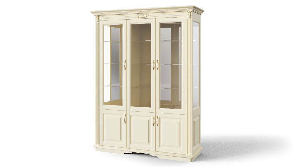 Витрина Dreamline Палермо 3-х створчатая ясень-слоновая кость 162х54х220
