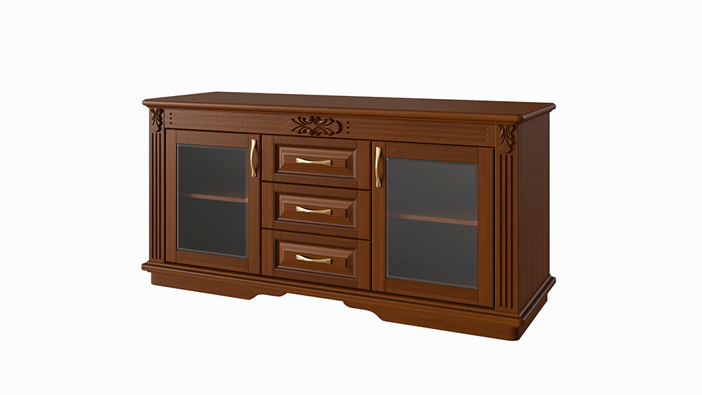 Комод Греденция Dreamline Палермо (3 ящика со стеклом) бук-орех 156х53х75