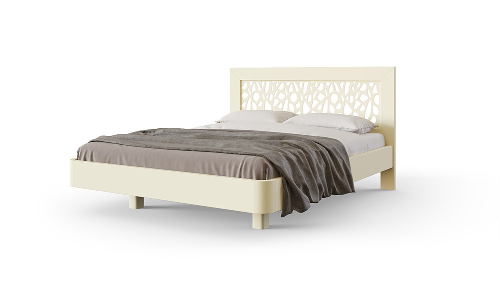 Кровать «Веро» с высоким, воздушным и стильным резным изголовьем производится из 100 % натурального массива бука или ясеня, и отличается скругленными углами геометрии изножья кровати.