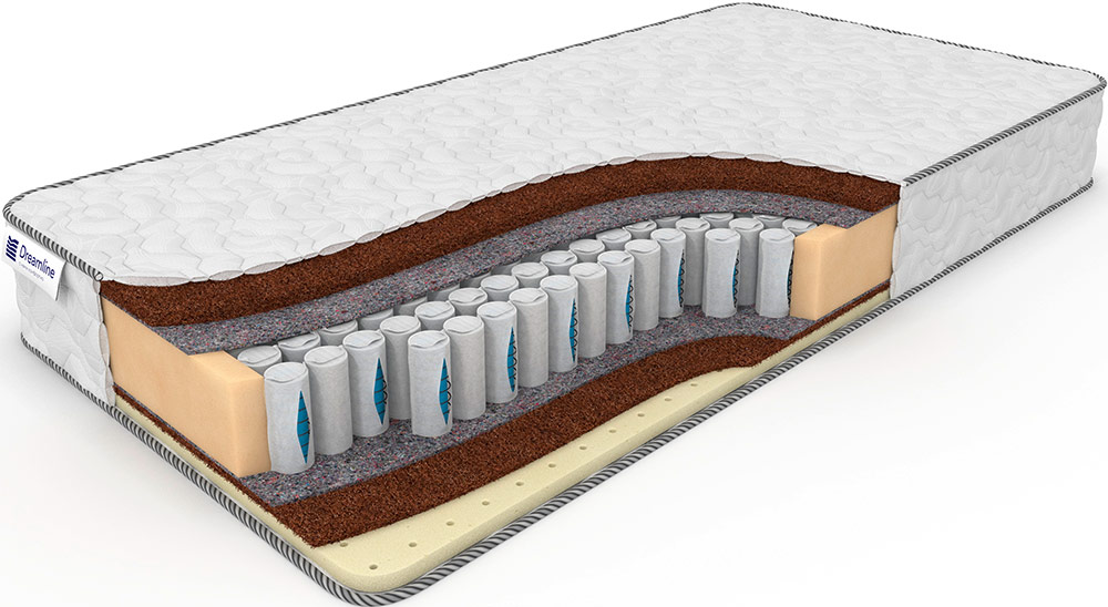 Матрас Balance Hard DS - индивидуально спроектированная модель, с заменой пружинного блока на DS (Double Spring, двойные пружины / пружина в пружине, расположенные в шахматном порядке ~ 570 пружин на одно спальное место). Главными преимуществами, в сравнении с оригинальной моделью и применяем двойным столбом пружин, являются улучшенные: поддерживающие свойста для большого веса, уровень комфорта во время сна для спящих с большой разницей в весе, анатомические свойства и максимально допустимая нагрузка на одно спальное место. Товар является нестандартным изделием с сохранением гарантийных обязательств от фабрики Dreamline. Возможность выбрать разный уровень жёсткости в одном изделии. В зависимости от настроения или потребностей организма, Вы можете выбрать комфортное спальное место, имея всего один матрас, стороны которого обладают разными свойствами жесткости: Сторона A - характеризуется низким уровнем анатомичности и жёсткостью выше среднего уровня. Эффективна для снятия обострения и профилактики болей в области позвоночника. Надежная профилактика развития сколиоза у детей и подростков. Сторона Б - имеет среднюю жёсткость и средний уровень анатомичности, достигаемый сочетанием натурального перфориванного латекса на поверхности матраса и латексированной кокосовой койры, которая выступает поддерживающим слоем и более равномерно распределяет нагрузку на пружинный блок. В основе матраса блок независимых пружин S2000 позволяющий максимально раскрыть ортопедические свойства наполнителя. Конструкция способна выдержать до 150 кг. на одно спальное место.