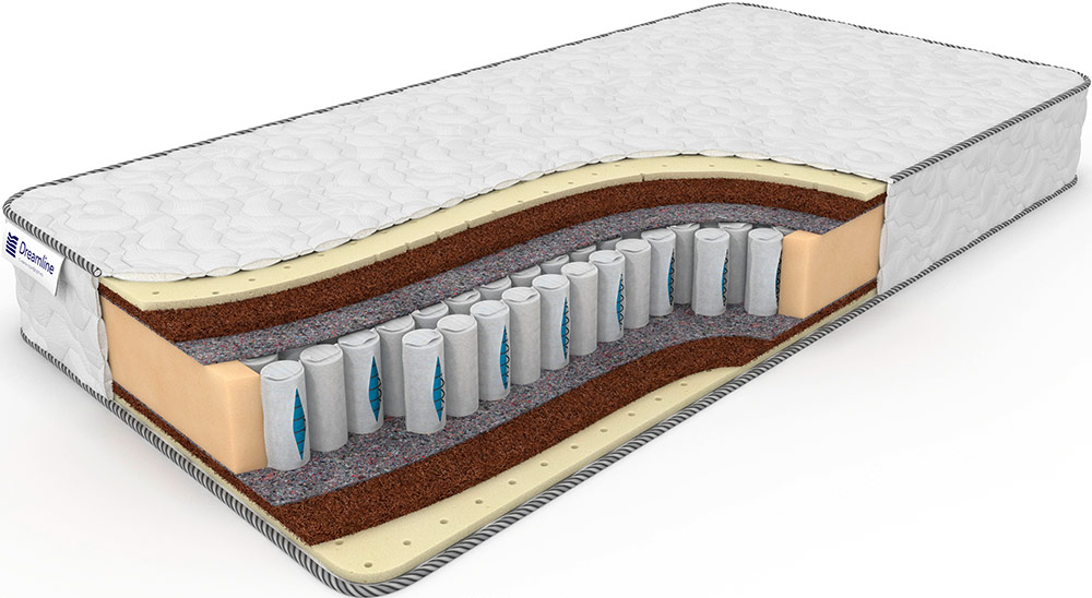 Матрас Balance Medium DS - индивидуально спроектированная модель, с заменой пружинного блока на DS (Double Spring, двойные пружины / пружина в пружине, расположенные в шахматном порядке ~ 570 пружин на одно спальное место). Главными преимуществами, в сравнении с оригинальной моделью и применяемым двойным столбом пружин, являются улучшенные: поддерживающие свойста для большого веса, уровень комфорта во время сна для спящих с большой разницей в весе, анатомические свойства и максимально допустимая нагрузка на одно спальное место. Товар является нестандартным изделием с сохранением гарантийных обязательств от фабрики Dreamline. Надёжный и долговечный матрас с достаточным запасом прочности, который идеально подходит для постоянного и ежедневного использования. Данная модель изготавливается на высокотехнологичном пружинном блоке DS, что позволяет без труда справляться с нагрузкой до 160 кг. на одно спальное место и отлично подходит для двух спящих. Матрас Balance Medium, с одинаковой жесткостью по обеим сторонам - изготовлен из экологически чистых, натуральных наполнителей. Сочетание натурального перфорированного латекса (2 см.) ближе к поверхности и следующая за ним латексированная кокосовая койра (1 см.) с каждой стороны изделия - делает данную модель сбалансированной по степени жесткости и уровню анатомичности. Каждый перечисленный слой играет важную роль в эксплуатации данной модели матраса: латекс, слой принимающий первоначальную нагрузку и способствующий расслаблению; кокосовая койра выступает слоем поддерживающим - наиболее равномерно распределяет нагрузку на пружинный блок и не позволяет погружаться в глубь матраса.