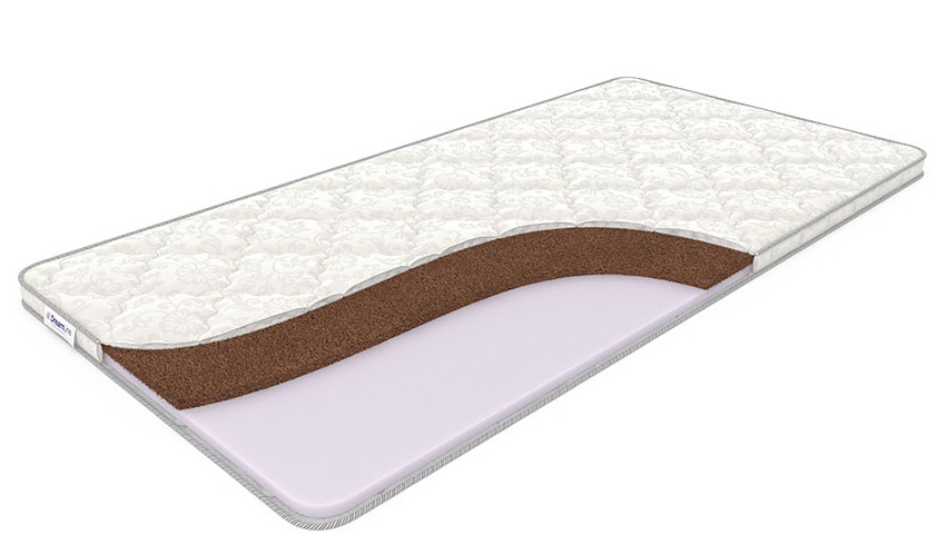 Наполнитель из латексированной кокосовой койры толщиной 20 мм увеличивает жёсткость матраса. Эластичная пена уменьшает жёсткость спального места и препятствует проникновению влаги. Защищает от загрязнения и способствует продлению срока службы матраса.