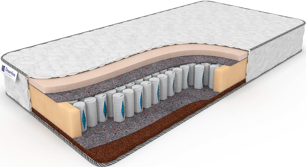 Матрас Memory Dream DS - индивидуально спроектированная модель, с заменой пружинного блока на DS (Double Spring). Главными преимуществами, в сравнении с оригинальной моделью, являются улучшенные: поддерживающие свойства для большого веса, уровень комфорта во время сна для спящих с большой разницей в весе, анатомические свойства, и максимально допустимая нагрузка на одно спальное место. Товар является нестандартным изделием с сохранением гарантийных обязательств от фабрики Dreamline. Матрасы данной серии выводят достоинства асимметрии на новый уровень благодаря новым материалам наполнителей. Сторона А – наполнитель из высокотехнологичного материала Memorix, который запоминает форму тела, лежащего на матрасе. Сторона Б – наполнитель из кокосовой койры, пропитанной латексом, придающий конструкции максимальную жёсткость. Независимый пружинный блок DS деликатно усиливает прочность и надёжность модели, за счёт двойного числа пружин. Прослойка из натурального льноджутового волокна защищает наполнители от пагубного воздействия металла пружинного блока, предохраняя матрас от преждевременного износа. Данная модель рекомендована тем, чей вес не превышает 160 кг.