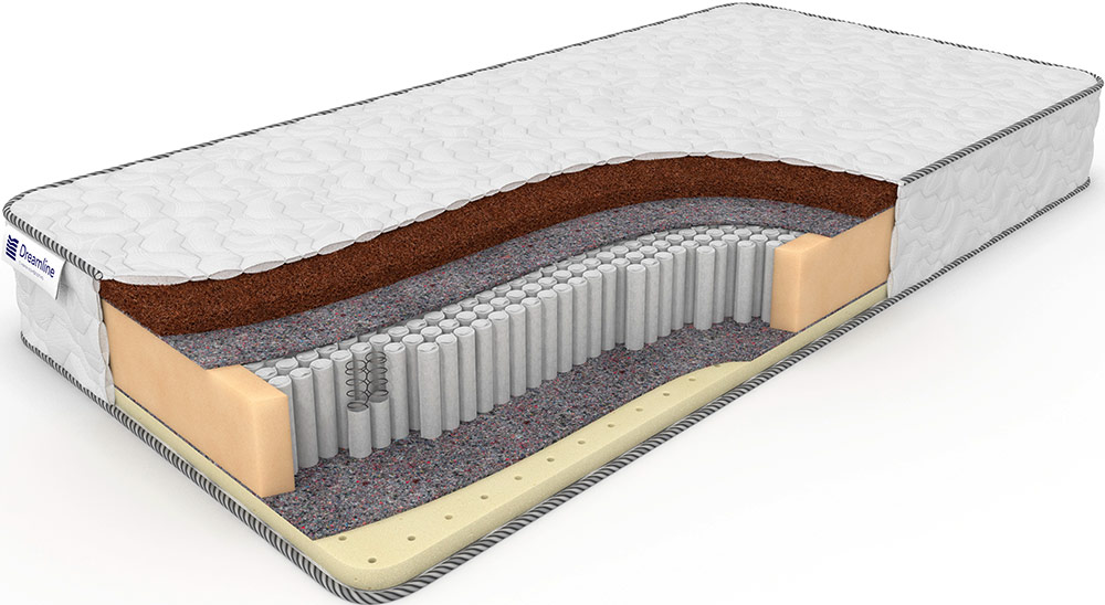 Уникальное предложение для тех, кто помнит о том, что по правилам эксплуатации каждые три месяца матрас следует переворачивать. С матрасом SleepDream - это нехитрое действие будет каждый раз оборачиваться открытием: ведь его поверхности имеют различные свойства. Сторона А - обладает повышенной жёсткостью за счёт наполнителя из латексированной кокосовой койры. Сторона В - характеризуется высоким уровнем анатомичности, благодаря наполнителю из натурального латекса. Защитная прослойка из льноджутового волокна препятствует трению обоих наполнителей о металл пружин, способствуя продлению срока службы матраса.