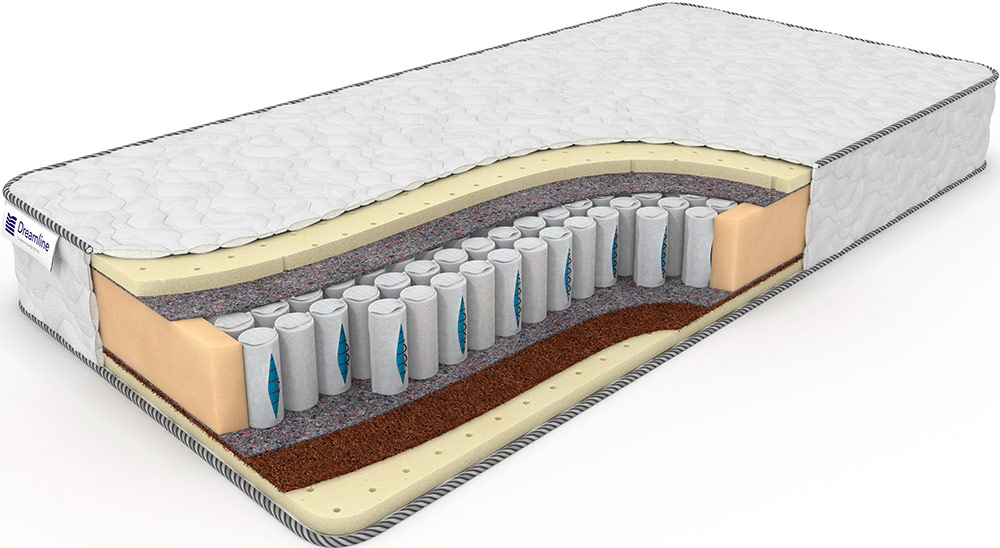 Матрас SleepDream Soft DS - индивидуально спроектированная модель, с заменой пружинного блока на DS (Double Spring, двойные пружины / пружина в пружине, расположенные в шахматном порядке ~ 570 пружин на одно спальное место). Главными преимуществами, в сравнении с оригинальной моделью и применяемым двойным столбом пружин, являются улучшенные: поддерживающие свойста для большого веса, уровень комфорта во время сна для спящих с большой разницей в весе, анатомические свойства и максимально допустимая нагрузка на одно спальное место. Товар является нестандартным изделием с сохранением гарантийных обязательств от фабрики Dreamline. Матрас для тех, кто хочет всё и сразу. Смонтированные на пружинном блоке S2000 поверхности данной модели обладают разными свойствами. Сторона А - обладает повышенной анатомичностью за счёт толстого слоя натурального латекса. Сторона Б - обладает не меньшей анатомичностью, подкреплённой жёсткостью ещё одного слоя из кокосовой койры. Прекрасно подойдёт для тех, чей вес не превышает 160 кг.