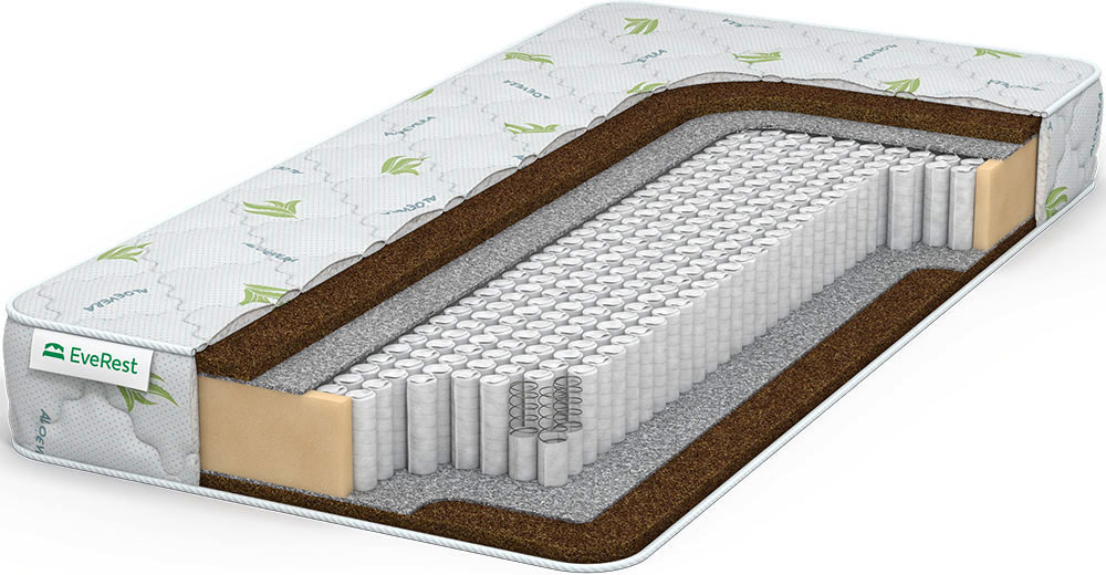 Жесткий пружинный матрас с ортопедическими свойствами и одним видом наполнителя — бикокосом. Основа модели — блок MultiPocket из адаптивных микропружин (500 пр./кв.м), в пружине 8 витков, толщина сечения проволоки — 1,4 мм. Анатомические свойства матраса связаны со способностью пружин точечно реагировать на нагрузку, повторять изгибы тела, т.к. они не связаны между собой. Жесткость матрасу с двух сторон придают плиты бикокоса 2 см толщиной. В нем соединены волокна околоплодника кокоса с холлофайбером. Войлок защищает настилы от истирания пружинным блоком. Трикотажный чехол защищен от бактерий составом Aloe Vera.