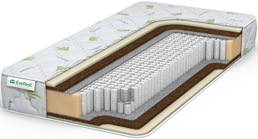 Пружинный матрас с ортопедическими свойствами средней жесткости с искусственным латексом на спальных поверхностях и настилами бикокоса. Основа модели — блок S1000 из адаптивных микропружин, точечно реагирующий на нагрузки. Жесткость матрасу придает бикокосовые плиты, изготовленный из койры и холлофайбера. Такой материал эластичнее кокосовой койры. От истирания пружинами бикокос защищен войлоком. Мягкость спальному месту с двух сторон придает искусственный латекс. Это плотный пенополиуретан, по свойствам похожий на природный аналог. Чехол матраса изготовлен из хлопкового прочного трикотажа с антисептической пропиткой AloeVera.