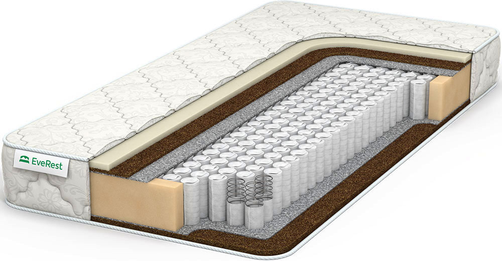 Пружинный матрас с ортопедическим эффектом и двумя видами наполнителя: искусственным латексом и бикокосом. Модель разносторонней жесткости.