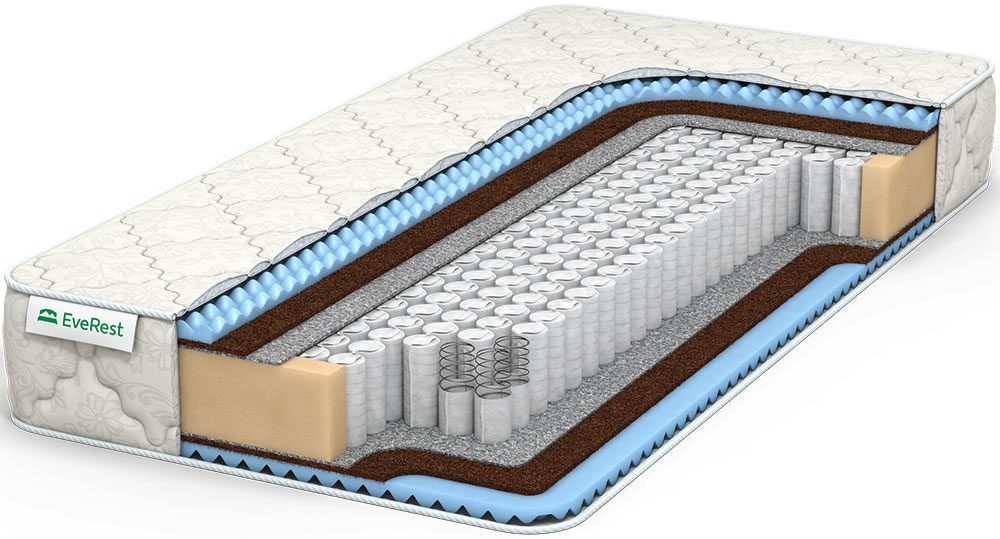 Модель с независимым пружинным блоком, ортопедическим эффектом и массажными свойствами. Относится к матрасам средней жесткости. В качестве наполнителя в нем использован вспененный материал ErgoFoam и койра.