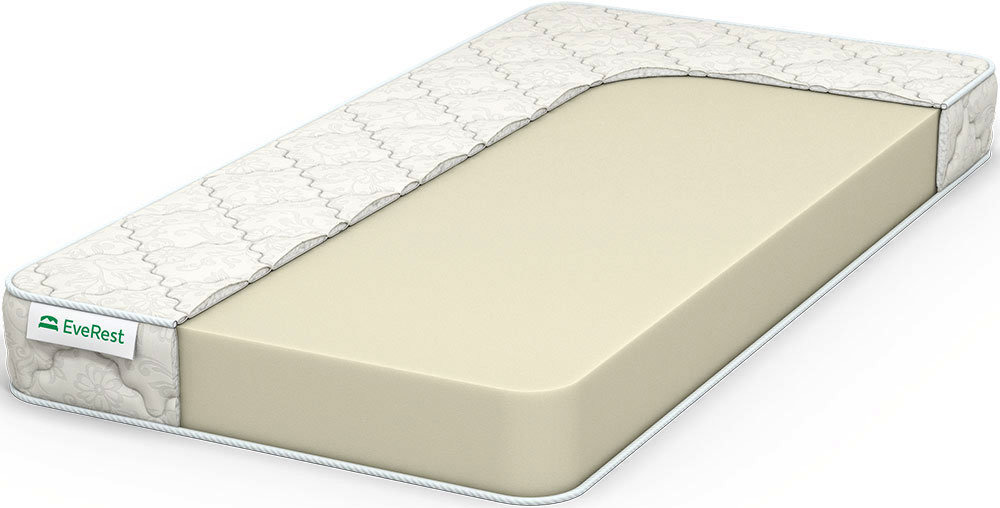 Беспружинный матрас содержит один наполнитель – плотный пенополиуретан. Относится к моделям средней жесткости. Доставляется в скрученном виде. Плотный пенополиуретан — вспененный высокоэластичный полимер. За счет ячеистой структуры он обладает хорошей воздухопроницаемостью. Такой материал обладает ценными качествами для полноценного и комфортного сна: - быстро восстанавливается после деформации; - поглощает вибрацию; - не сдавливает мягкие ткани; - выдерживает значительные нагрузки; - подстраивается под контуры тела; - не вызывает аллергии. Чехол, закрывающий матрас, изготовлен из хлопкового жаккарда со сложным плетением и простеган рельефными ромбами на воздушном синтепоне.