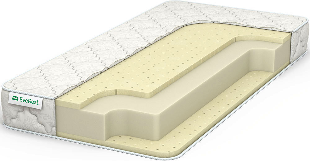 Беспружинный матрас, включающий два вида наполнителя: природный латекс и плотный пенополиуретан. Модель высотой 20 см, умеренной мягкости. Пенополиуретан — высокоэластичный полимер, изготовленный по технологии вспенивания. Благодаря ячеистой структуре обладает хорошей воздухопроницаемостью, быстро восстанавливается после деформации, поглощает вибрацию и выдерживает значительные нагрузки. Перфорированные пласты натурального латекса придают комфорт матрасу и умеренную мягкость, не сдавливают сосуды и ткани во время отдыха. Чехол изготовлен из хлопкового жаккарда со сложным плетением нитей и простеган рельефными ромбами на синтепоне.
