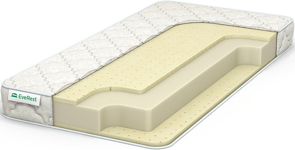 Беспружинный матрас, включающий наполнители двух видов: плотный пенополиуретан и природный латекс. Высота модель — 14 см, умеренной мягкости. Пенополиуретан — высокоэластичный полимер, изготовленный по технологии вспенивания. Благодаря ячеистой структуре обладает хорошей воздухопроницаемостью, быстро восстанавливается после деформации, поглощает вибрацию и выдерживает значительные нагрузки. Перфорированные пласты натурального латекса на спальной поверхности придают комфорт матрасу и умеренную мягкость, не сдавливают сосуды и ткани во время отдыха. Чехол изготовлен из хлопкового жаккарда со сложным плетением нитей и простеган рельефными ромбами на синтепоне.
