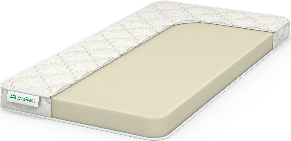 Беспружинный матрас включает один наполнитель — монолит плотного пенополиуретана толщиной 10 см. Такая модель средней жесткости удобна для дивана. Ее легко скручивать и транспортировать на дачу или к месту отдыха. Плотный пенополиуретан — вспененный полиэфир. Этот высокоэластичный материал за счет ячеистой структуры обладает хорошей воздухопроницаемостью, обеспечивает комфортный сон. Относится к наиболее долговечным и упругим наполнителям. Выдерживает большие нагрузки, не вызывает аллергии. Дополнительную мягкость матрасу придает синтепон, на котором рельефными ромбами простеган хлопковый жаккардовый чехол.